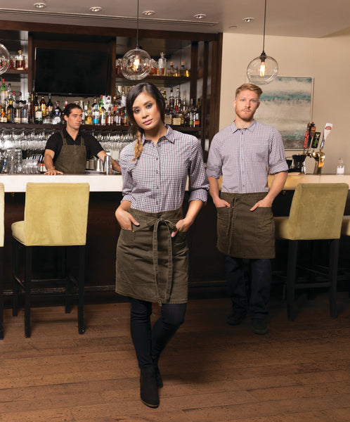 A Camisa xadrez é perfeita para o serviço de mesa e bar pois adoram o seu tecido leve e as cores distintas que combinam com a maioria dos aventais.